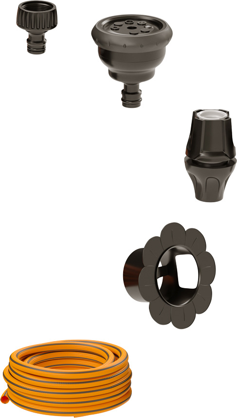 Μέσα στη συσκευασία του Springy θα βρείτε όλα τα εξαρτήματα: από την υποδοχή βρύσης, μέχρι τον εκτοξευτήρα πολλαπλής λειτουργίας με ρακόρ, την πρακτική επιτοίχια βάση, το ασύγκριτο design, για να τυλίγετε το Springy τακτοποιημένα. Ανοίξτε τη συσκευασία και απολαύστε το νερό σε δράση!